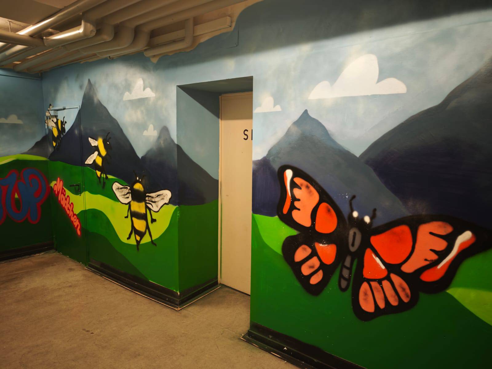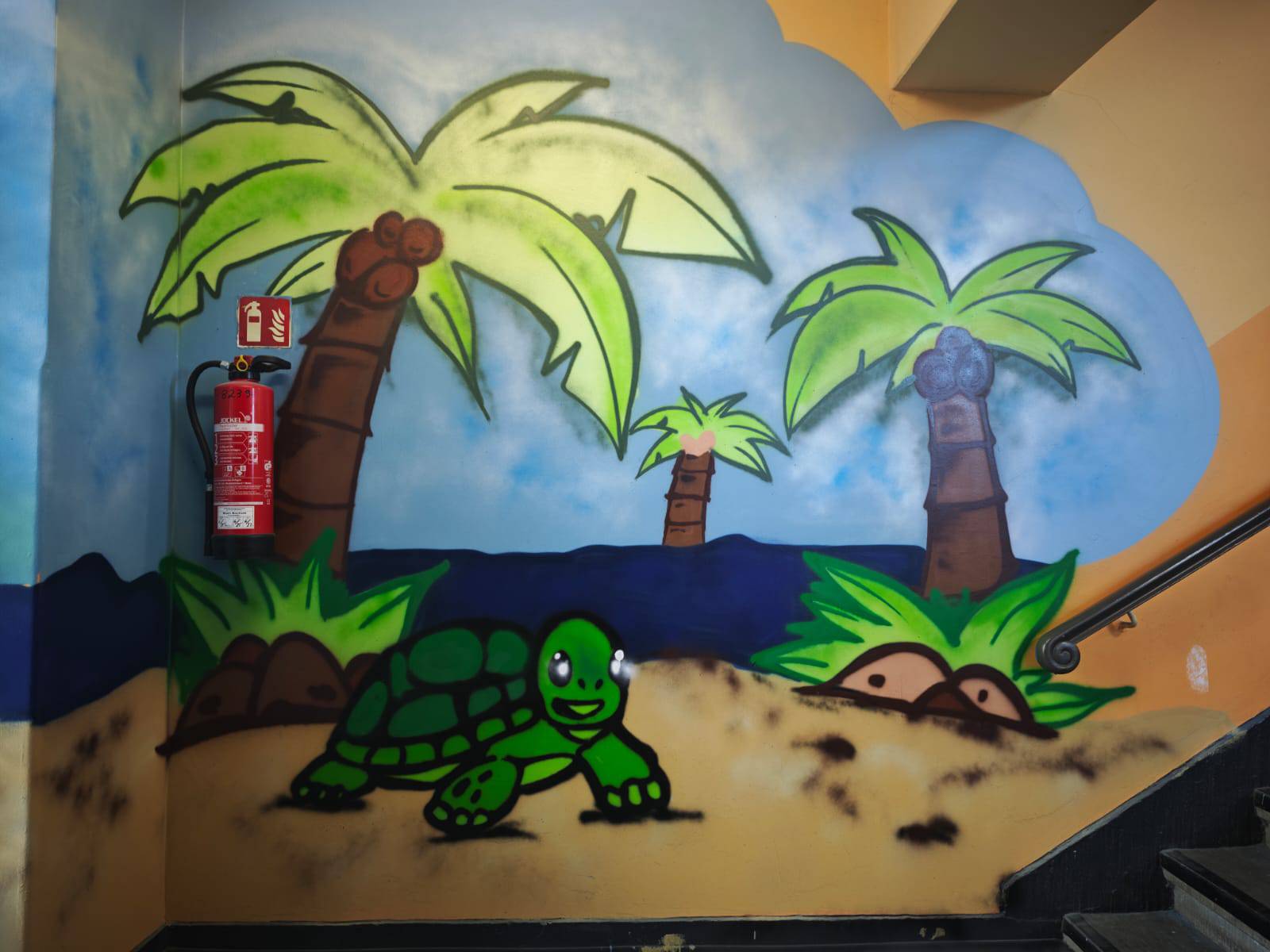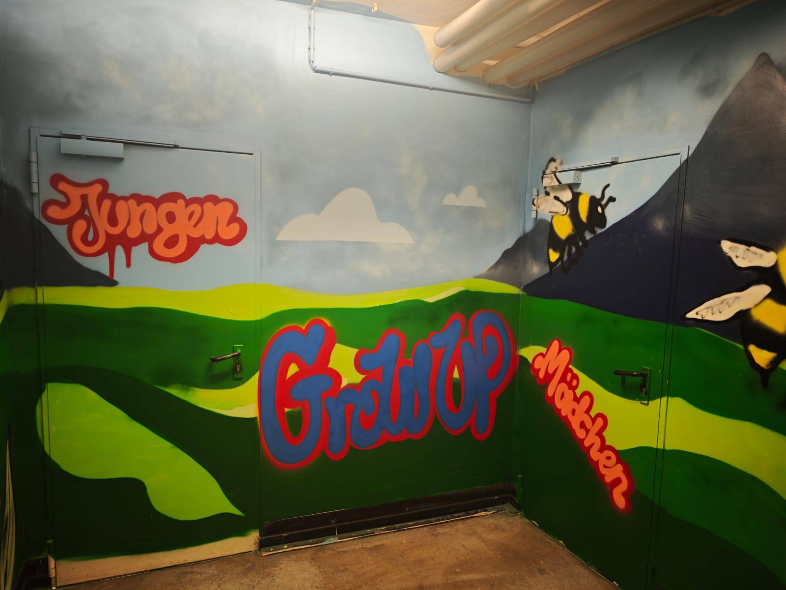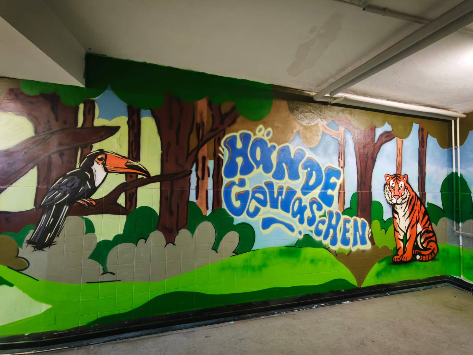Im Rahmen unserer Graffiti-AG haben die Kinder der Grundschule An der Maarbrücke gemeinsam mit den Künstlerinnen und Künstlern der Grow Up GmbH den Flur zu den Schultoiletten in ein farbenfrohes kleines Abenteuer verwandelt. Unter fachkundiger Anleitung entstanden mutige Formen, leuchtende Farben und viele eigene Ideen. Danke an die Grow Up GmbH und an alle jungen Kreativen – ihr habt unserer Schule einen frischen, fröhlichen Blick geschenkt!
